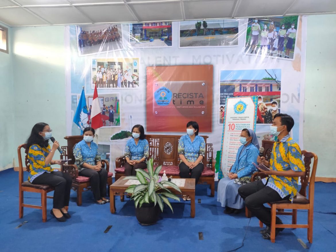 Tanjung Pandan, YTKNews.id- Dalam rangka meningkatkan promosi sekolahnya ke masyarakat yang lebih luas di masa pandemi covid-19, TK, SD, dan SMP Regina Pacis Tanjung Pandan dan Manggar membentuk Tim Promosi Sekolah Recista Time yang menggelar kegiatan rutin setiap Jumat sore dengan berbagai macam kegiatan, mulai dari talk show hingga pentas kreasi peserta didik yang disiarkan secara live di laman Youtube dan Facebook Regina Pacis, Rabu (9/6/2021).