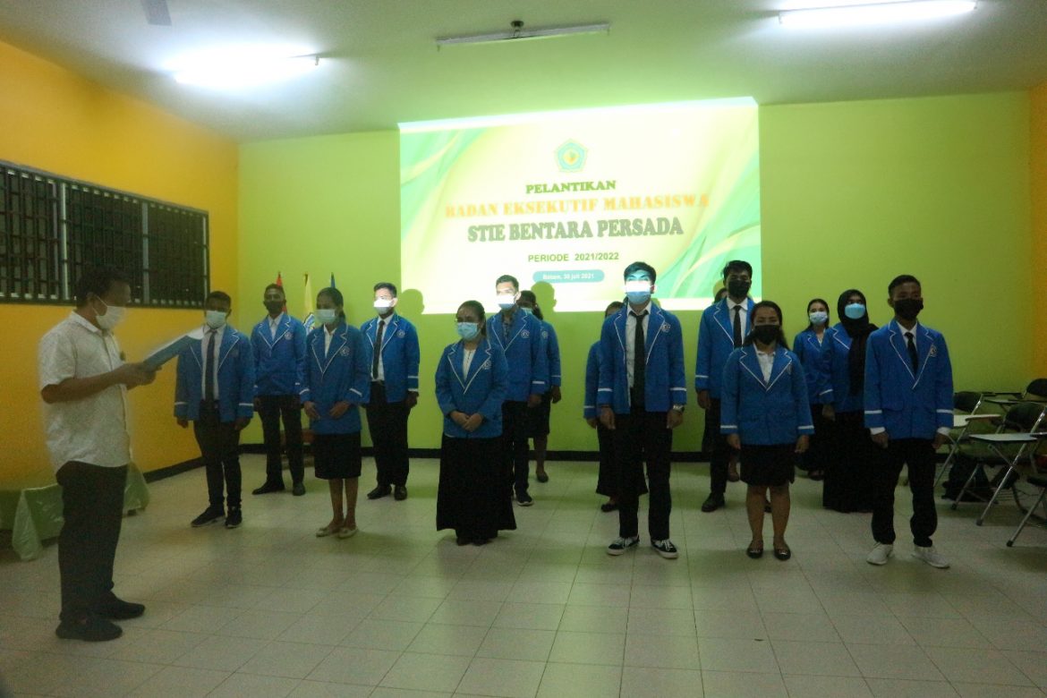 Batam, YTKNews.id– STIE Bentara Persada Batam menggelar acara pelantikan 20 pengurus Badan Eksekutif Mahasiswa (BEM) Periode 2021-2022, bertempat di kampus STIE Bentara Persada Batam, Jumat (20/7/2021).