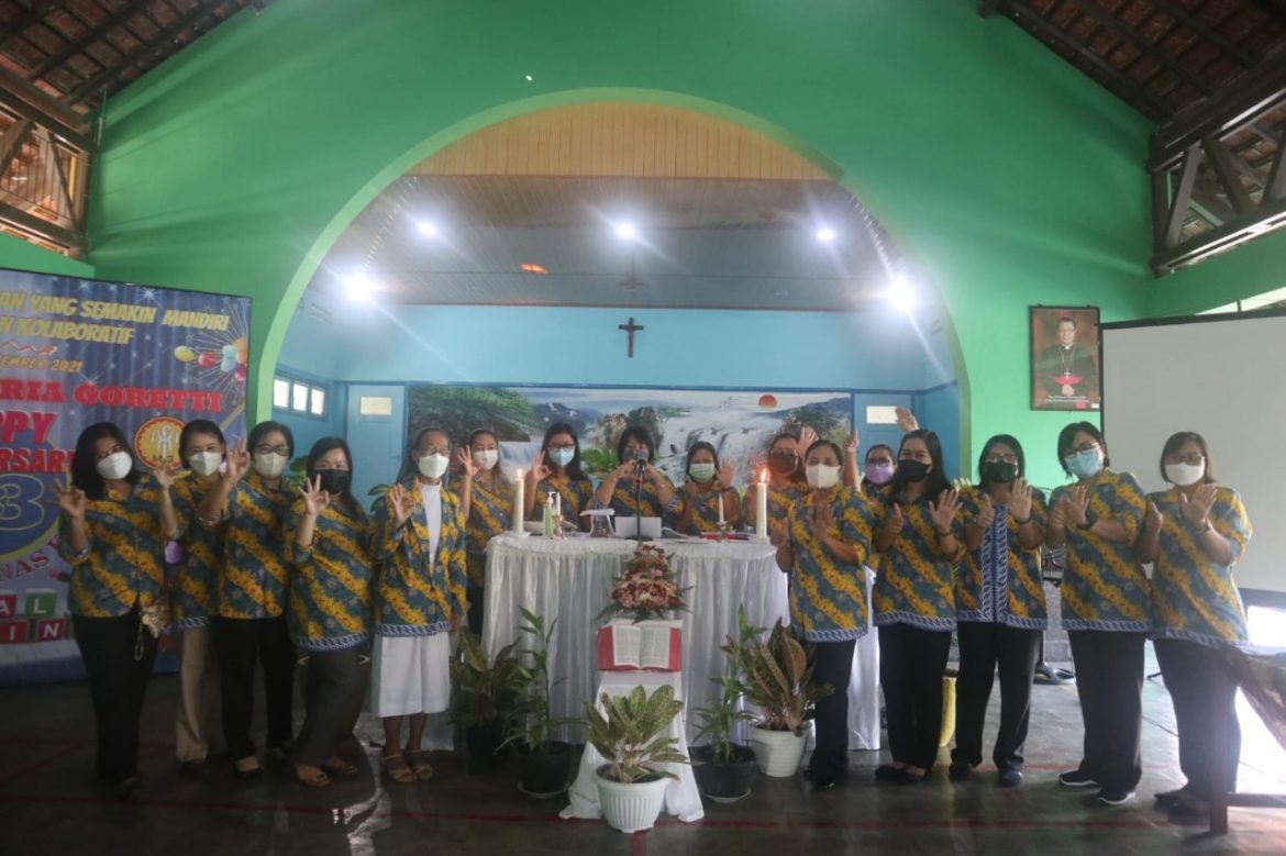 Pada kesempatan ini, komunitas Maria Goretti Sungailiat menyambut gembira penghargaan kesetiaan kerja yang diterima oleh Ibu Siti Sumarah, guru SMP Maria Goretti yang sudah genap 25 tahun membaktikan diri kepada YTK.