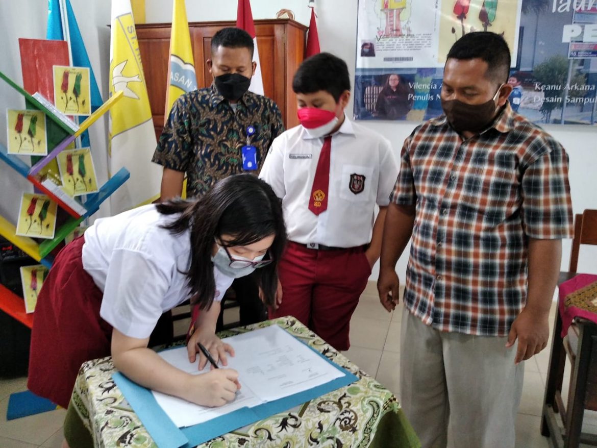 Novel ‘Yang Bersalah’ setebal 80 halaman ditulis oleh Villencia Aripin, siswi Kelas VI, dan cover novel tersebut merupakan lukisan karya Keanu Arkananta, siswa kelas IV.