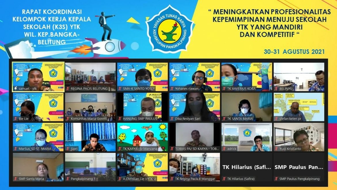 Sungailiat,YTKNews.id– Sekolah-Sekolah Yayasan Tunas Karya (YTK) di Provinsi Kepulauan Bangka Belitung (Kep. Babel) mengikuti rapat koordinasi (rakor) pada 30-31 Agustus 2021 secara virtual.