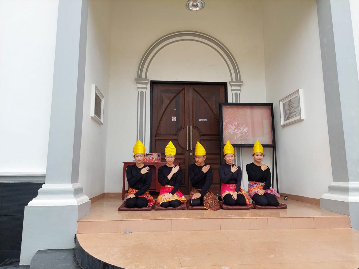Sedangkan di depan gereja, anak didik mulai TK sampai SMP memanggungkan kreatifitasnya mulai dari bernyanyi, menari dan pertunjukkan seni lainnya. Panggungnya tanpa panggung. Pasalnya, mereka menggunakan serambi di pintu masuk Gereja sebagai panggung.