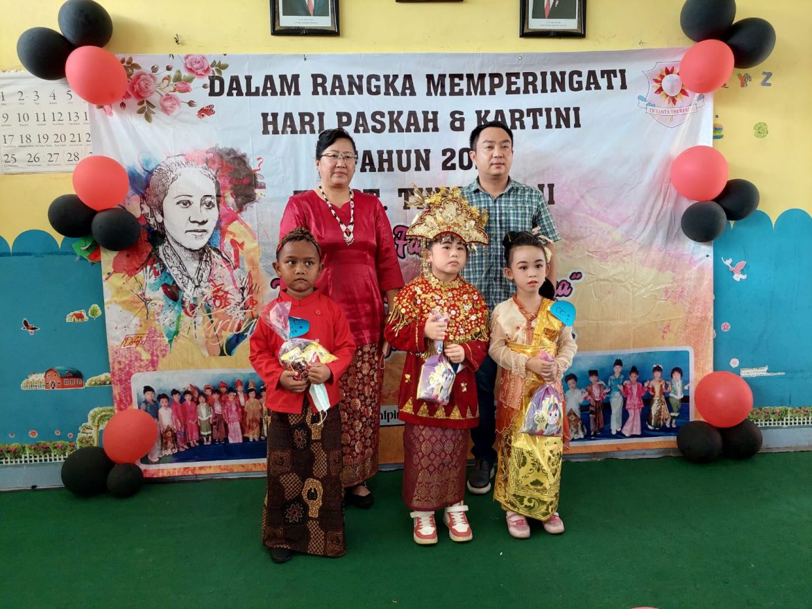 Pangkalpinang, YTKNews.id – Perayaan hari Kartini tampak dirayakan lebih meriah di komunitas sekolah TK St Theresia 2 Pangkalpinang. Peringatan hari pahlawan yang memperjuangkan emansipasi wanita tersebut tidak tanggung-tanggung, semua guru,pegawai dan anak didik kompak berbusana adat dari seluruh daerah.