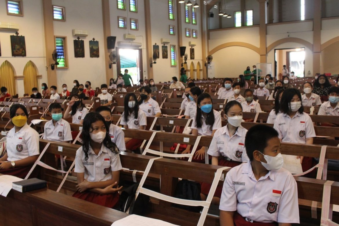 Pangkalpinang, YTKNews.id – Pada 22 April 2022 bertempat di Gereja Katedral Pangkalpinang siswa kelas VI SD St Theresia I, SD St Theresia II, SD St Paulus I, dan SD St Paulus II yang bernaung di bawah Yayasan Tunas Karya (YTK) menggelar Perayaan Ekaristi bersama yang dipimpin oleh Romo Yosef Setiawan.