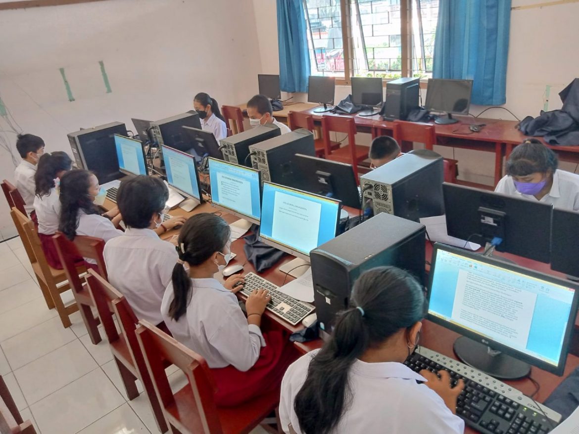 Dikarenakan pada tahun itu masa pandemi maka pembelajaran TIK dilakukan secara daring sehingga tidak ada praktik yang dilakukan anak-anak. Namun mulai pada tahun pelajaran 2021/2022, pembelajaran TIK dilakukan secara tatap muka dan siswa berkesempatan praktik langsung di depan komputer.