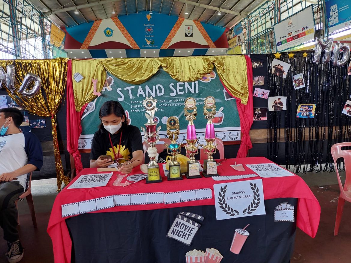 Tampak siswa siswi sibuk mendekor papan-papan partisi untuk kegiatan pameran yang akan menampilkan karya-karya mereka, serta menjadi penjaga stand di setiap ekstrakurikuler yang mereka geluti.