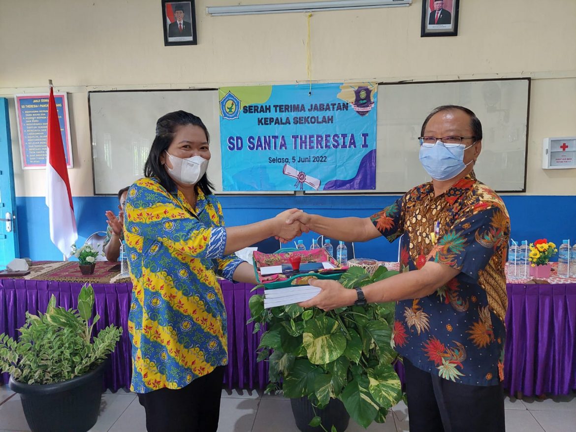 Ternyata, hari itu dilakukan proses untuk mempersiapkan acara serah terima jabatan (sertijab) kepala sekolah. Selasa, 5 Juli 2022 bertempat di ruang kelas, Suyati, S.Pd.SD menyerahkan jabatan kepada Siau Lie, S.Pd.SD yang sebelumnya bertugas di SD Regina Pacis Tanjungpandan.
