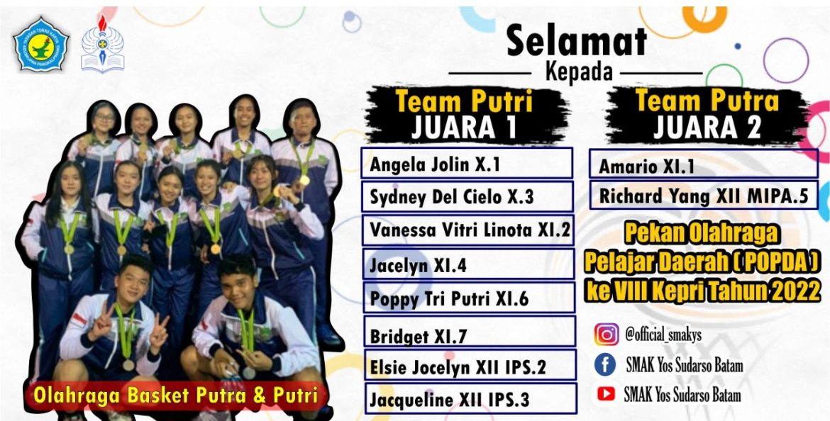 Batam, YTKNews.id – Siswa SMA Katolik Yos Sudarso (SMAKYS) lagi-lagi mendulang prestasi. Kali ini, dalam perhelatan Pekan Olahraga Pelajar Daerah (Popda) ke VII Provinsi Kepulauan Riau (Kepri) tahun 2022, siswa dan siswi SMAKYS berhasil mengharumkan nama kota Batam.