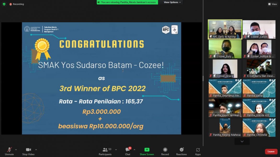Apapun kelas mereka, mereka berhasil meraih hadiah uang tunai Rp 3.000.000,00 dan beasiswa senilai Rp 10.000.000,00 per orang dari Universitas Kristen Maranatha.