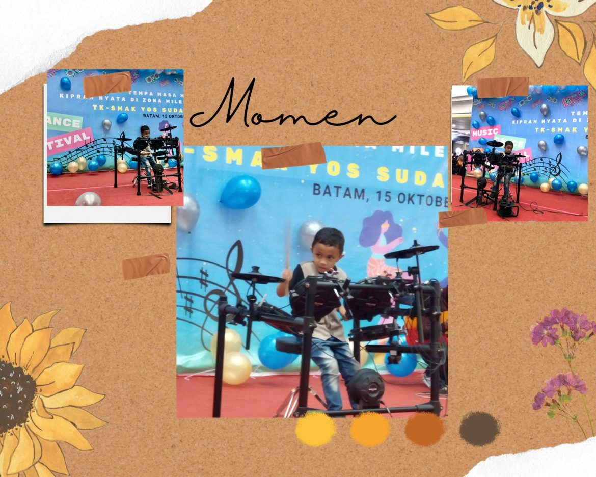 Dan untuk kedua kalinya, sang Drummer cilik uji kebolehan di acara music and dance Festival yang diadakan oleh SD Yos Sudarso di Mega Mall (15/10/22). Decak kagum tampak terlihat dari raut wajah penonton saat itu, serasa dihipnotis ketika tangan sang drummer cilik yang begitu piawai dalam bermain dan diiringi music “Begin by Maneskin” yang menambah riuh suasana tatkala badan ikut bergoyang juga.