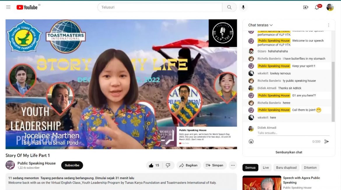 Ia mengatakan penampilan para peserta dapat disaksikan pada kanal youtube Public Speaking House https://youtube.com/@publicspeakinghouse2491?feature=shares pada tanggal 19-21 Desember 2022 pada pukul 19.00-21.00 WIB.