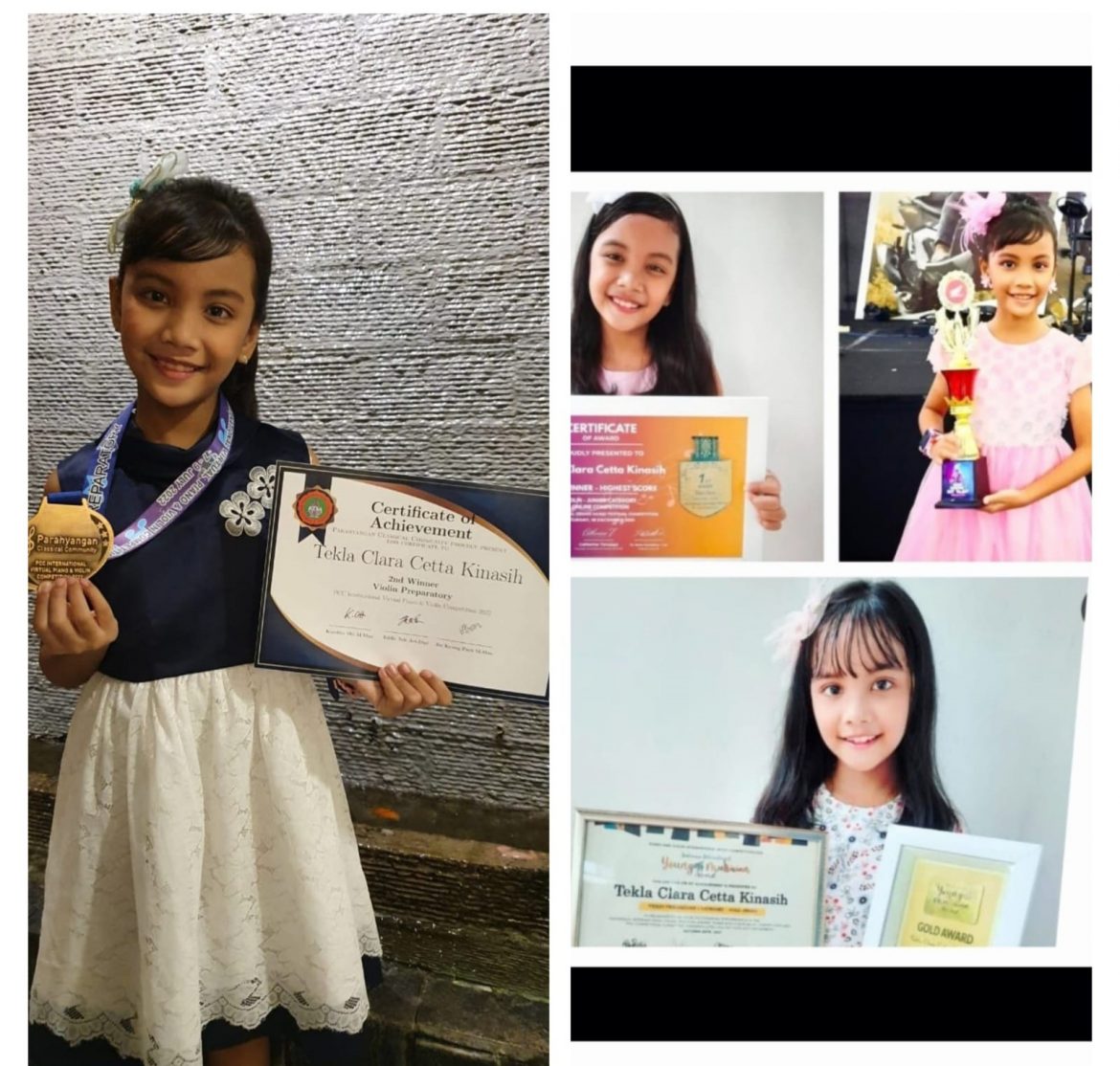 - First Winner (High Score) – Violin Junior Category, International Grand Music Festival Competition (18 Desember 2021).