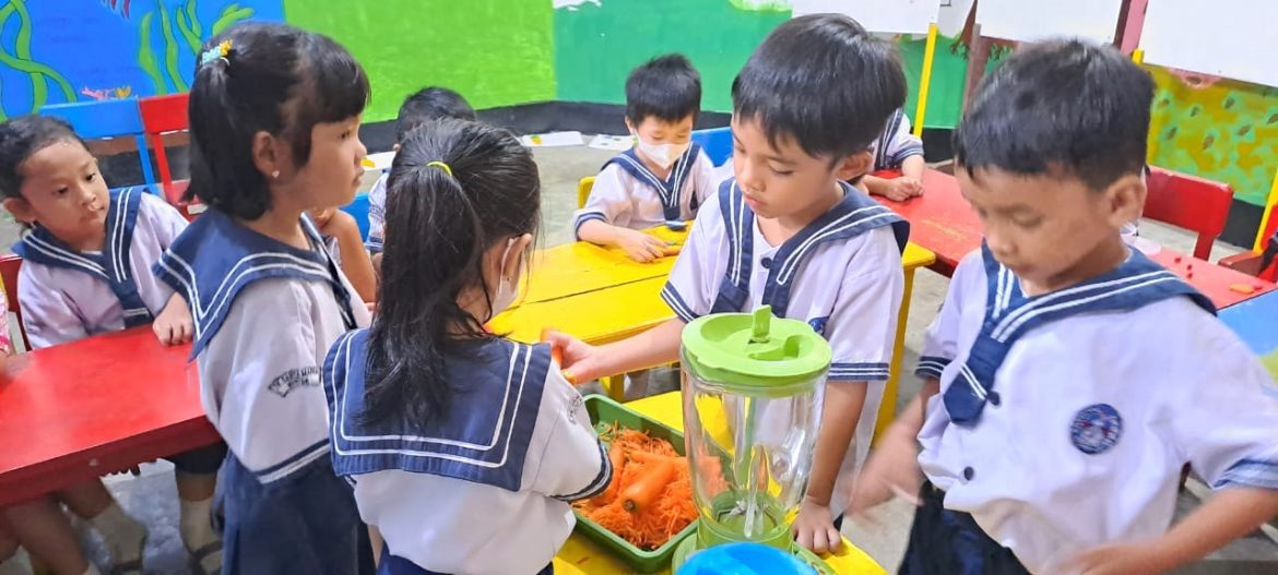 Setelahnya, untuk tema tanaman sayuran wortel, anak-anak bersama ibu guru membuat jus wortel dan minum bersama. Beberapa anak menyukai jus wortel tapi untuk sebagian anak lainnya tidak suka jus tersebut. “Miss, jus wortel itu pahit saya mual litany,” anak didik Kelompok A2, Gracioa.