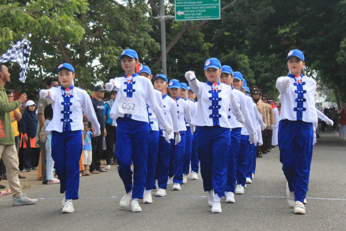 Dengan kostum yang menggambarkan semangat merah putih dan kostum biru putih yang melambangkan semangat juang mengangkasa, tim SD Santa Maria Mentok tampil dengan atraktif dan penuh semangat di tengah jalan utama kota. Mereka membawakan gerakan yang penuh kekompakan dan menyelaraskan langkah dengan lagu-lagu wajib nasional yang menggema. Penampilan mereka seolah menghidupkan semangat nasionalisme dan patriotisme.
