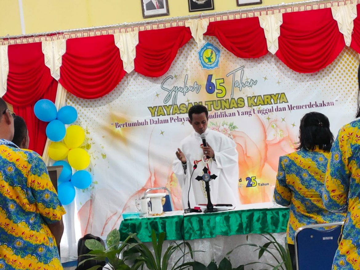 Tanjungbalai Karimun, YTKNews.id—Jumat, 08 September, ada aura berbeda di lingkungan sekolah Santo Yusuf Karimun. Ada apa? Ya, hari itu 65 tahun sudah usia Yayasan Tunas Karya. Berbeda dari tahun-tahun sebelumnya, perayaan hari ulang tahun Yayasan Tunas Karya kali ini diselenggarakan dengan sangat sederhana. Pelaksanaan Misa Syukur tersebut dilaksanakan di sekolah Santo Yusuf (TK, SD, SMP, dan SMA)
