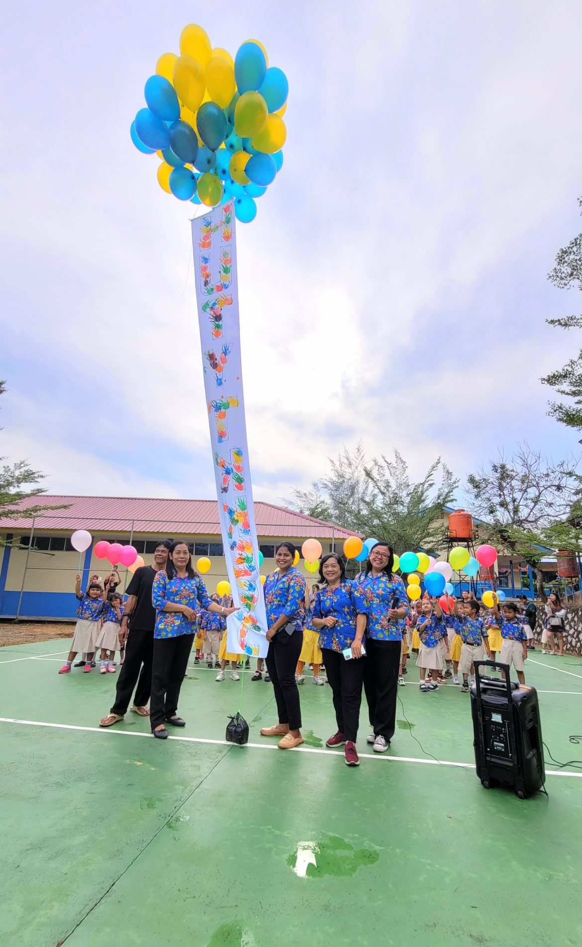 Semua anak dan orang tua turut berpartisipasi pada seluruh rangkaian kegiatan, bahkan anak-anak juga bernyanyi bersama. Anak-anak di ajak bernyanyi bersama dan mendengarkan kata sambutan dari Kepala Sekolah, selanjutnya part yang ditunggu-tunggu anak-anak dan orang tua bersama-sama menuju lapangan untuk melepaskan balon bersama sebagai ungkapan rasa syukur untuk HUT YTK. Wajah berseri dari anak-anak pun nampak saat dibagikan balon yang akan diterbangkan bersama. teriakan kegembiraan pun terdengar saat hitungan ketiga yang menandakan balon siap di lepaskan.