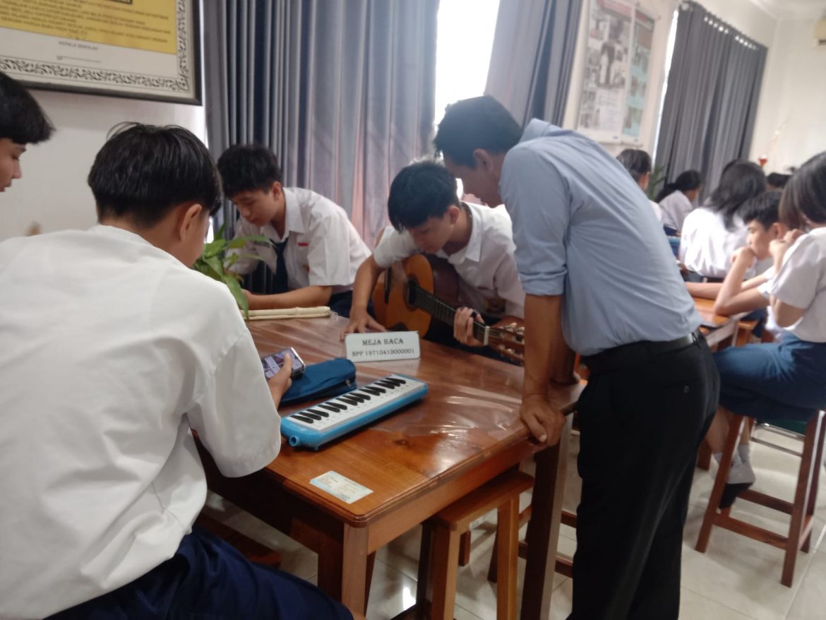 Pangkalpinang, YTKNews.id — Senin, 19 Februari 2024 pada jam PKN digunakan untuk literasi khusus kelas IX dan sudah terjadwal yaitu kelas IXD dan IXE yang berbeda waktu. Jam literasi ini digunakan untuk menggembangkan literasi siswa mulai dari membaca, meresume buku, membaca koran dan majalah dan kegiatan lainnya. Kali ini kegiatan yang akan di lakukan adalah memainkan alat musik dengan lagu wajib dan lagu nasional.