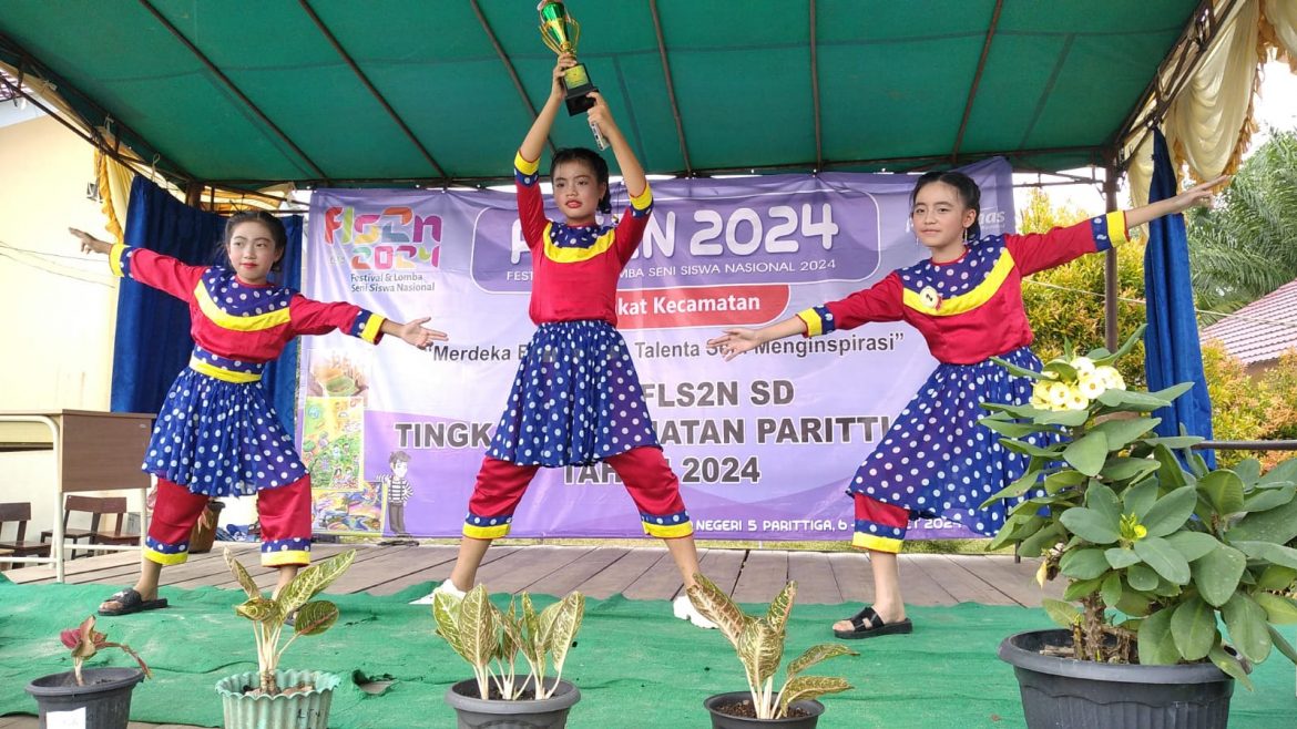 PARITTIGA, YTKNEWS.ID – SD Hilarius kembali mengukir prestasi dengan tampil sebagai juara pertama pada Festival dan Lomba Seni Siswa Nasional (FLS2N) tingkat kecamatan yang digelar di SD Negeri 5 Parittiga, Kamis (07/03/2024). Mereka adalah Novellya Then, Gisel Kimberly, dan Marshella. Ketiganya bergerak dengan lincah dalam menampilkan ‘Tari Kanak Hume’.