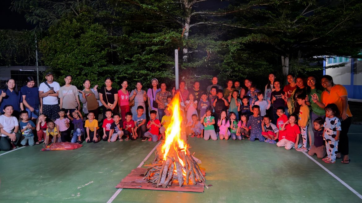 Setelah membakar kertas dilanjutkan dengan berdoa dan menyanyi bersama mengelilingi api unggun.