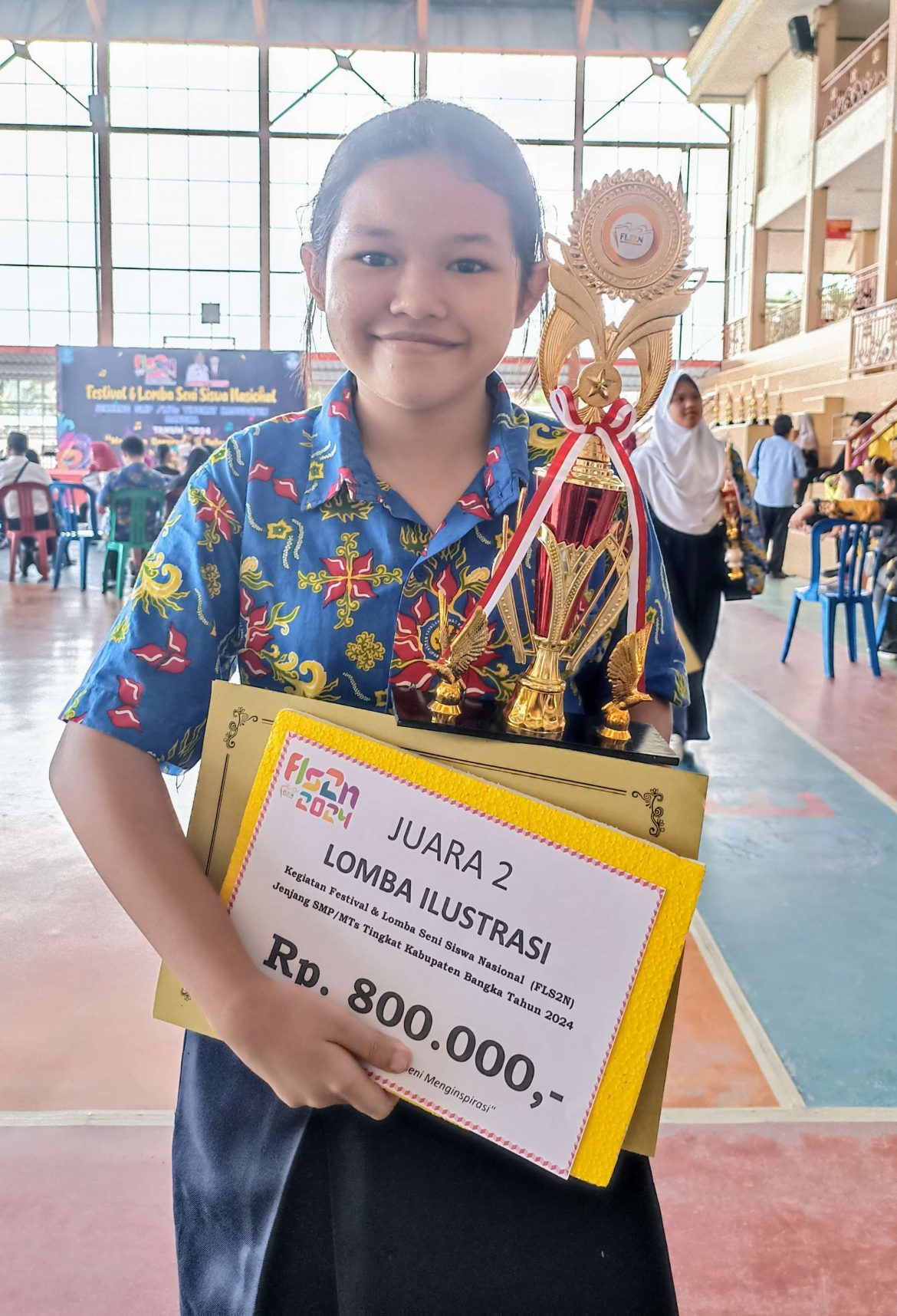 Sungailiat, YTKNews.id– Salah satu siswa yang membanggakan dari SMP Maria Goretti, Hany Joane Sebayang, berhasil meraih prestasi gemilang dalam bidang seni lukis. Siswa berparas mungil ini telah menorehkan berbagai prestasi sejak SD, dan kini ia menambahkan prestasi baru dengan meraih juara II dalam Lomba Ilustrasi FLS2N tingkat Kabupaten Bangka.