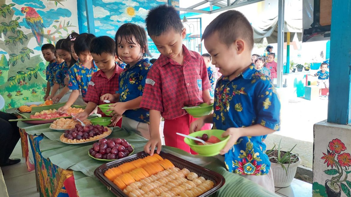 Belinyu, YTKNews.id – Hari makan buah, begitulah yang terjadi pada Kamis 30 Mei 2024 di TK Santa Agnes Belinyu. Ragam buah-buahan segar disajikan begitu menggoda selera didepan kelas untuk disantap para siswa.