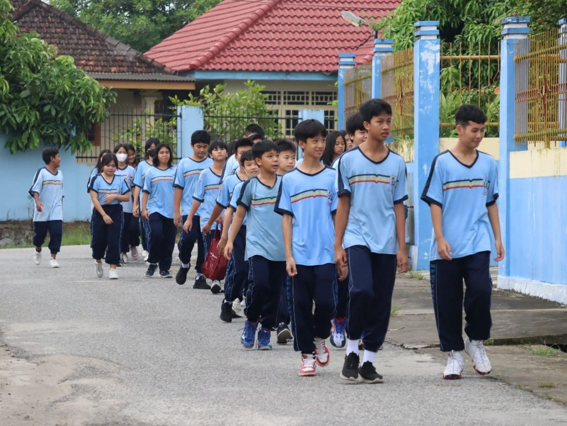 Pangkalpinang, YTKNews.id — Bukan untuk hal lain seluruh warga SMP Santa Theresia turun kejalan, melainkan untuk jalan sehat. Jalan sehat yang dilaksanakan 30 September ini merupakan salah satu rangkaian acara menyambut pesta pelindung sekolah, Diikuti oleh tak kurang 520 orang, tidak hanya peserta didik saja namun guru serta tenaga kependidikan juga turut berpartisipasi dalam kegiatan ini. Rute jalan sehat dimulai dari SMP Santa Theresia menuju ke arah KODIM 0413 Bangka melalui Gang Pisang, kemudian lurus sampai melintasi Simpang 5 dan putar arah melintasi sepanjang Jalan Solihin GP. Sepanjang perjalanan, peserta jalan sehat senantiasa tertib dan patuh terhadap peraturan lalu lintas, tak lepas dari peran guru dan tenaga kependidikan yang selalu mengawasi dan membantu mengatur lalu lintas disetiap persimpangan yang dilalui. Antusiasme peserta didik terasa dari semangat berjalan sambil bersenda gurau, bercengkerama dengan teman-temannya.