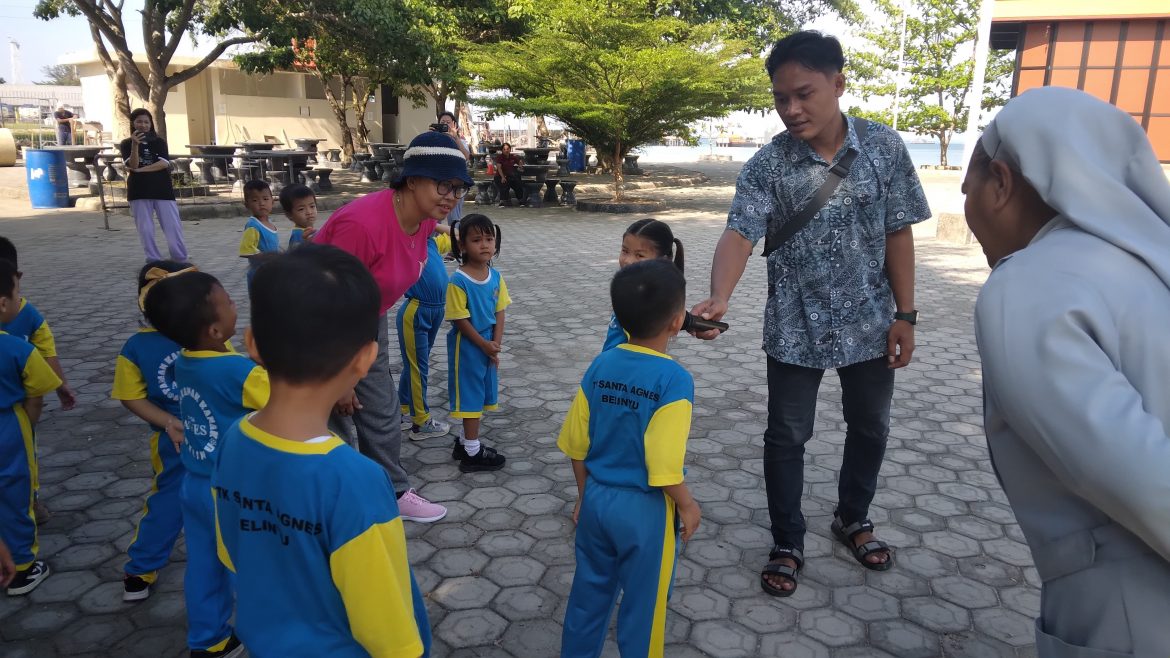 Hari itu terlihat seluruh peserta didik TK Santa Agnes Bersama Para Orangtua berkumpul di sekolah sebelum kemudian berangkat menuju Pantai Tanjung Putat menggunakan mobil dari beberapa orang tua murid yang bersedia untuk ikut serta mengantarkan anak-anak ke tempat tujuan