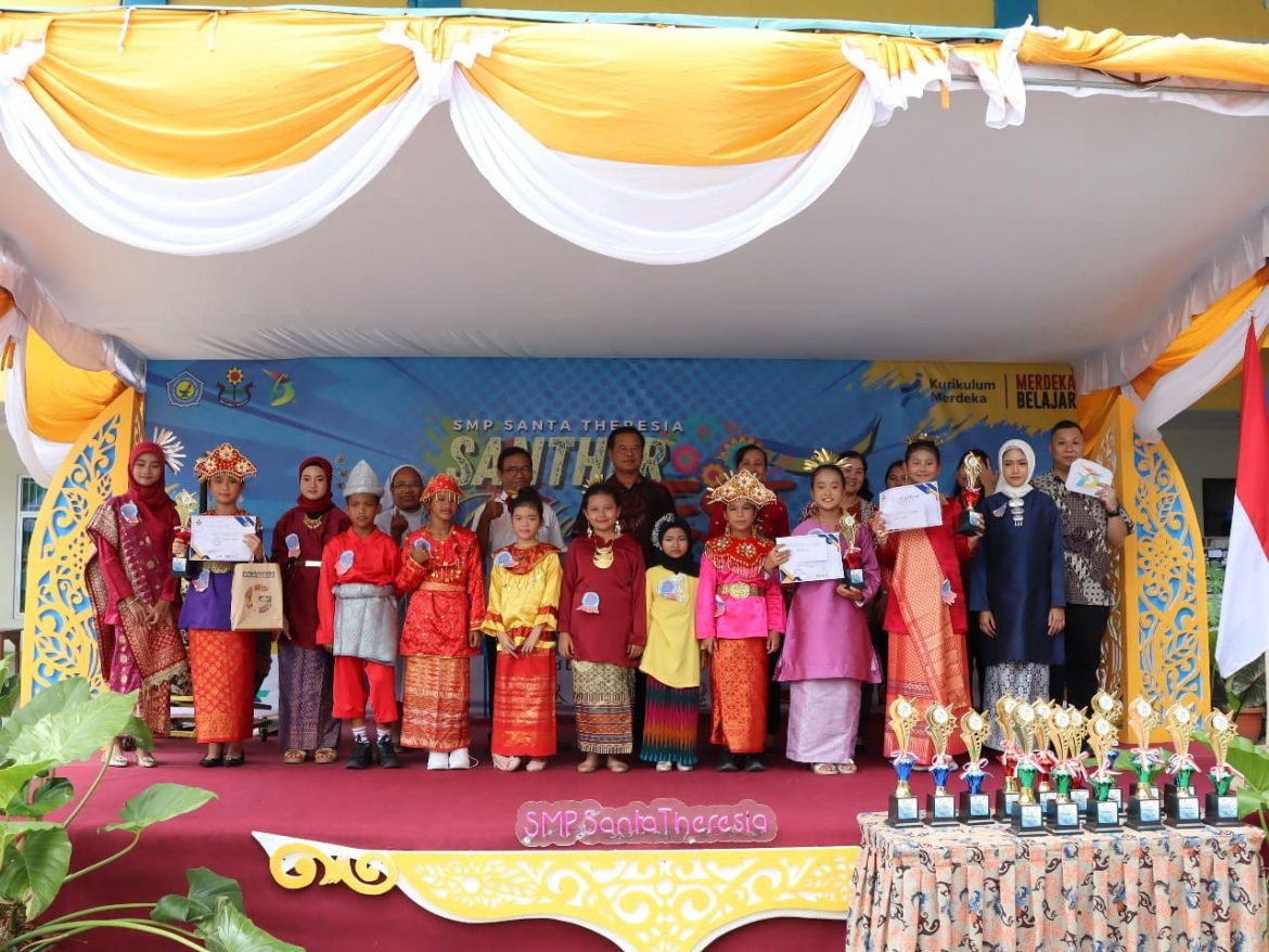 Pangkalpinang, YTKNews.id — Santher Culture Fest adalah kegiatan yang diselenggarakan oleh SMP Santa Theresia dalam rangka merayakan pesta pelindung sekolah yang jatuh pada perayaan Santa Teresia dari Kanak-kanak Yesus, tanggal 1 Oktober 2024 ini. Santher Culture Fest yang baru dilaksanakan untuk pertama kalinya ini adalah festival kebudayaan ala SMP Santa Theresia yang memadukan kegiatan Projek Penguatan Profil Pelajar Pancasila (P5) dengan tema “Kearifan Lokal”. Rangkaian lomba-lomba tradisional diadakan untuk memeriahkan kegiatan dengan melibatkan Sekolah Dasar (SD), negeri maupun swasta di Kota Pangkalpinang, serta dimeriahkan oleh bazar makanan. Ide kegiatan ini adalah sebuah ide unik sebab kegiatan serupa belum pernah dilaksanakan di tempat lain.