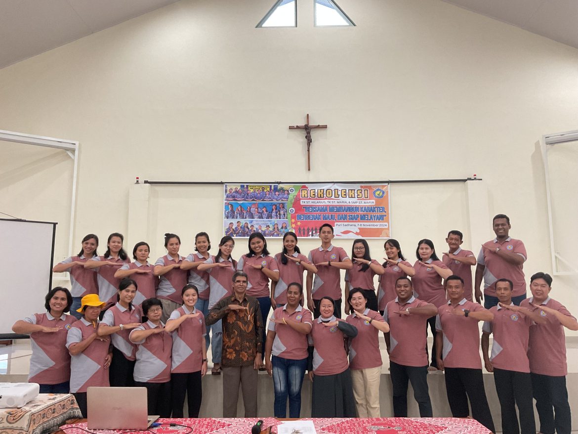 Pangkalpinang, YTKNews.id – Sebanyak 26 guru dan tenaga pendidik dari tiga unit Yayasan Tunas Karya (TK St. Hilarius, TK St. Maria, dan SMP Santa Maria) mengikuti rekoleksi di Puri Sadhana, yang dibimbing oleh Yohanes Bosco Otto, Penyuluh Bimas Katolik Kota Pangkalpinang. Dalam pembekalan tersebut, Yohanes memberikan materi penting mengenai pembentukan karakter, dengan mengangkat tema “Bersama Membangun Karakter, Bergerak Maju, dan Siap Melayani.”