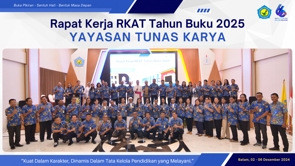 Batam, YTKNews.id— Awal Desember 2024 sepertinya menjadi waktu penuh rahmat dan harapan bagi keluarga besar Yayasan Tunas Karya (YTK). Pasalnya, sebanyak 47 Kepala Sekolah dan 3 Kepala Unit dengan wajah penuh sumringah mulai mengikuti Rapat Kerja RKAT Tahun Buku 2025. Kali ini, Rapat Kerja (Raker) tersebut diadakan di Ballroom berstandar nasional, milik SMAK Yos Sudarso Batam, Senin, tanggal 2  sampai 6 Desember 2024.