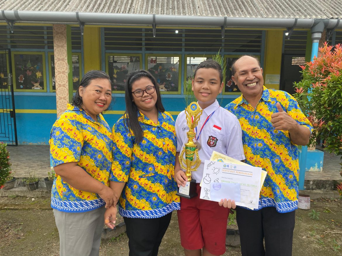 Proses penyerahan piala, piagam penghargaan, medali dan sejumlah uang pembinaan kepada Abraham Edward Rafael Silitonga selaku peraih Juara 3 Lomba Kompetensi Siswa dibidang Ilmu Pengetahuan Alam (IPA). Dalam hal ini Bu Desy Wulandari, S.Pd selaku guru pendamping memberikan motivasi kepada Edward untuk tetap menjadi anak yang memiliki tekad kuat untuk berhasil dan pertahankan terus kerja keras dalam belajar dan berusaha.