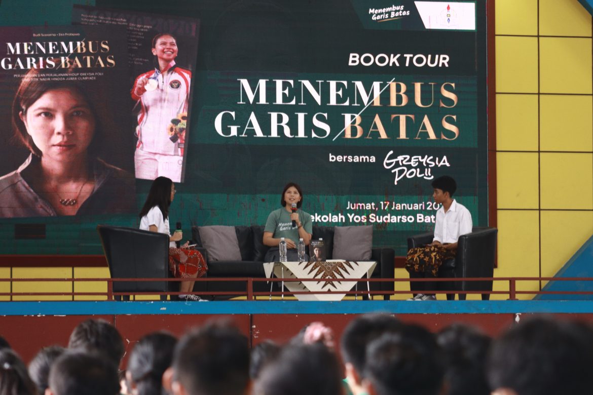Greysia Polli, atlet bulutangkis yang telah gantung raket sejak 12 Juni 2022 itu datang dalam rangka mempromosikan buku biografinya yang berjudul “Menembus Garis Batas.” Buku tersebut berisi riwayat hidup dan kisah perjalanan karier Greysia Polli di dunia bulu tangkis.