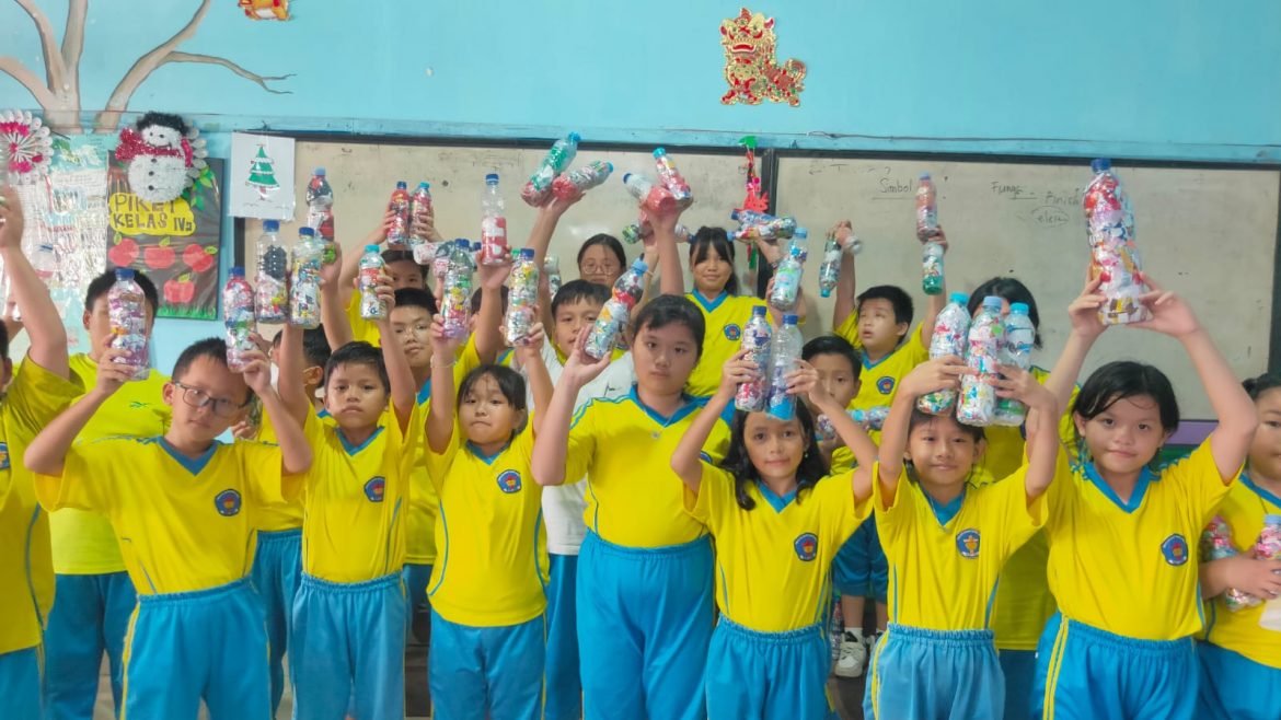 Selama beberapa minggu, siswa kelas 4A mengumpulkan sampah plastik dari lingkungan sekitar sekolah dan rumah mereka. Mereka kemudian memotong kecil-kecil sampah tersebut dan memasukkannya ke dalam botol plastik hingga padat.