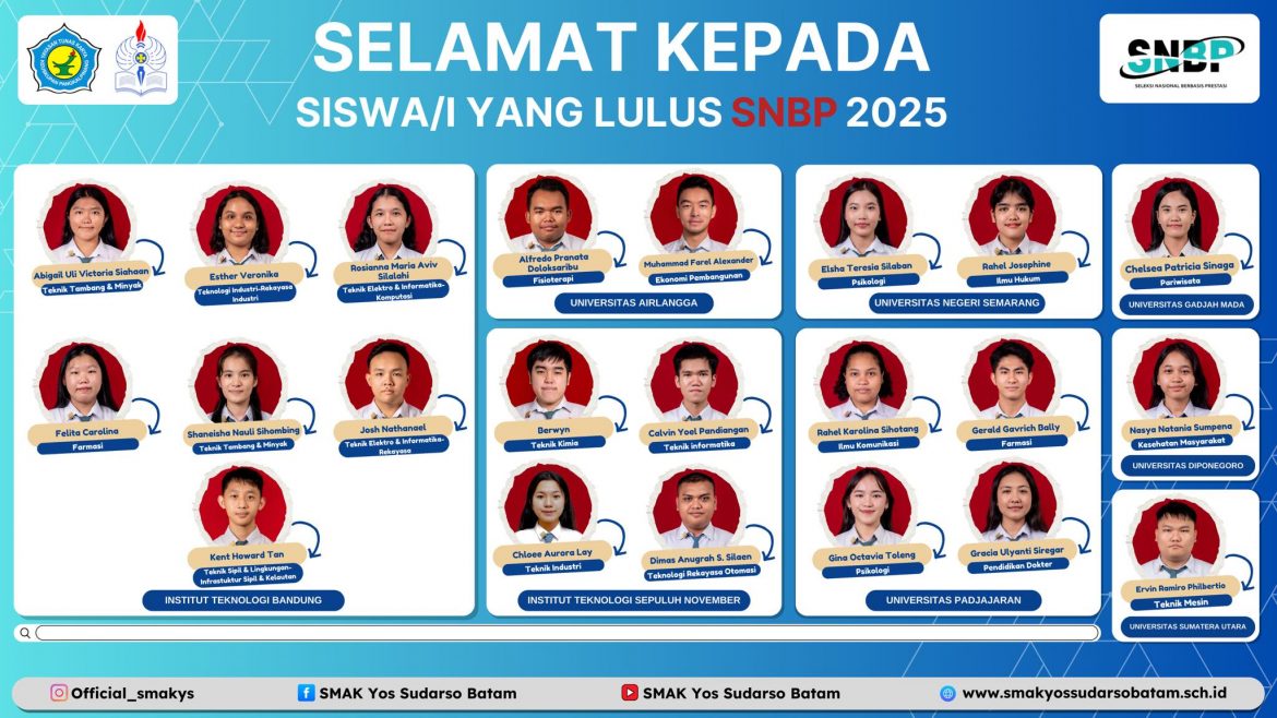 Berikut ini adalah daftar nama siswa dan siswi SMAKYS yang berhasil lolos SNBP 2025 :