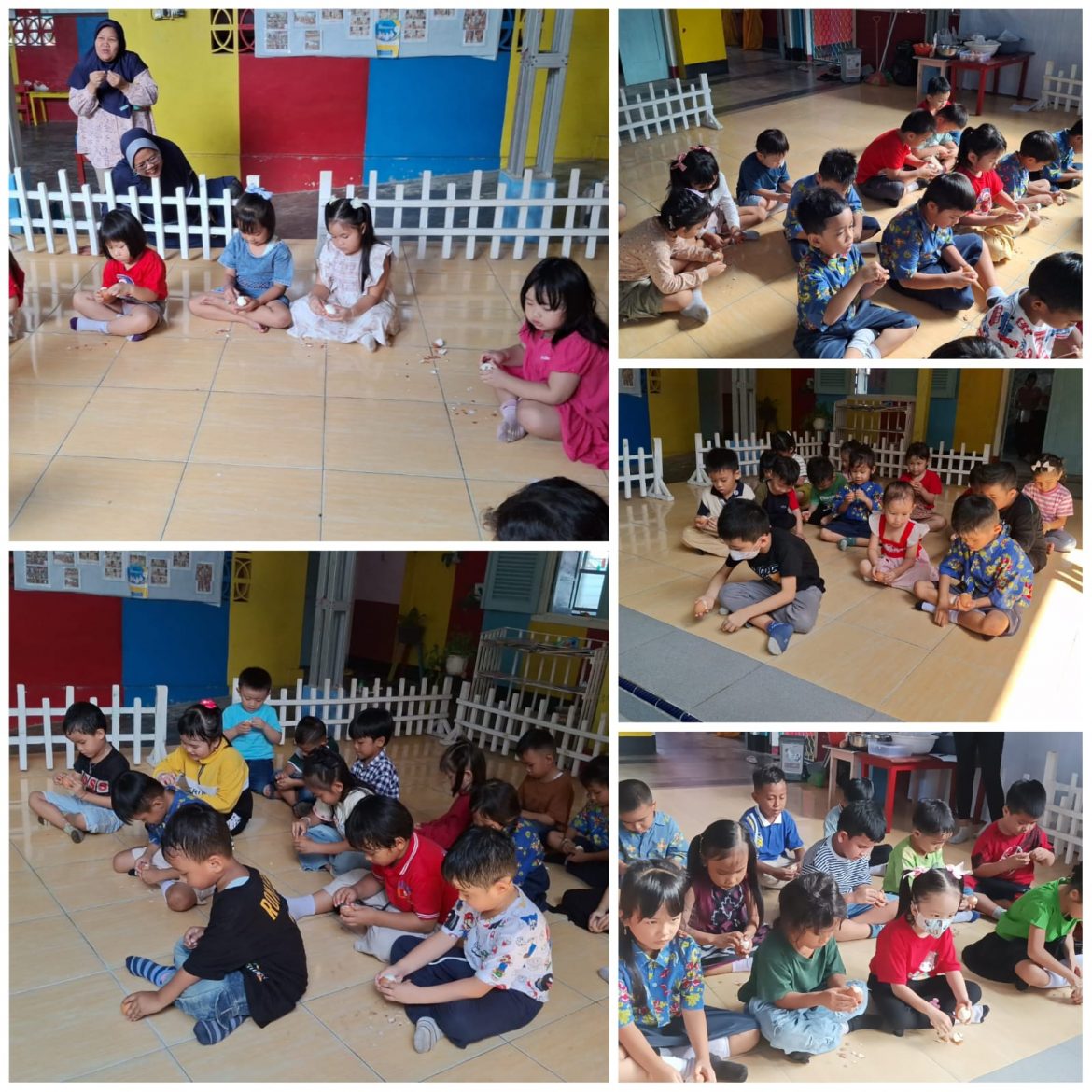 Selain lomba mencari telur, anak-anak juga diajak untuk mengikuti lomba mengupas telur. Lomba ini untuk melatih fokus dan kesabaran anak-anak.