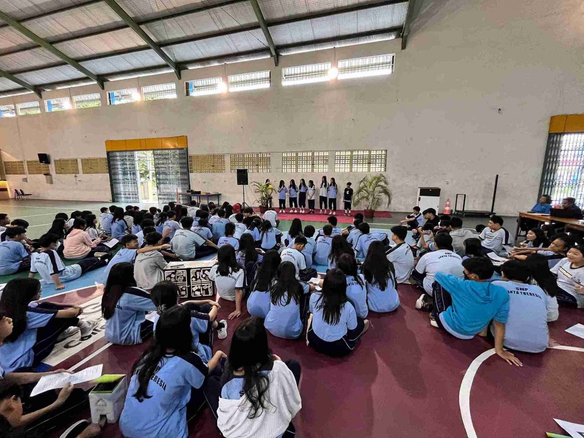 Pangkalpinang, YTKNews.id — Hari yang ditunggu-tunggu telah tiba, inilahkegiatan terakhir dari pelaksanaan gelar karya P5 kelas 8 pada 21 Maret lalu di GOR SMP Santa Theresia. Gelar karya ini merupakan puncak kegiatan dari pelaksanaan Projek Penguatan Profil Pelajar Pancasila (P5) yang sudah dilaksanakan selama satu minggu. Kegiatan gelar karya ini berbeda dari biasanya. Jika biasanya jenjang kelas 7-9 digabung, kali ini lebih bervariasi. Masing-masing jenjang merayakan kegiatan yang berbeda. Kelas 8 mengadakan promosi produk berupa presentasi di depan peserta didik kelas 8. Kegiatan ini dipandu oleh MC, Melva Sibarani, S.Pd, beliau juga memberikan selamat dan tidak lupa berterima kasih kepada peserta didik yang telah kreatif dan berinovasi dalam membuat produk dari permasalahan kebersihan di dalam kelas. Banyak sekali produk-produk yang dibuat oleh peserta didik diantaranya penyedot debu, lemari penyimpanan, sapu otomatis, kotak sampah berbahan kardus dan masih banyak sekali trobosan-trobosan yang diberikan oleh peserta didik yang patut diapresiasi dan diacungi jempol.