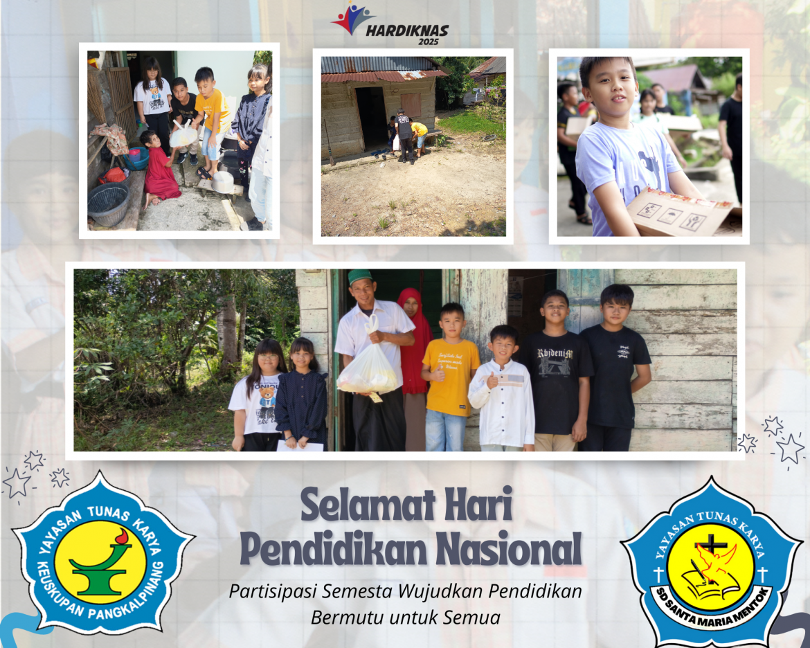 Mentok,YTKNews.id– Memperingati Hari Pendidikan Nasional (Hardiknas), siswa SD Santa Maria Mentok mempersembahkan kado spesial bagi dunia pendidikan melalui aksi nyata yang menginspirasi. Anak-anak SD Santa Maria yang tergabung dalam kelompok Krucil melakukan kegiatan berbagi sembako dan paket makanan kepada warga kurang mampu di wilayah Mentok pada Maret 2025 lalu.
