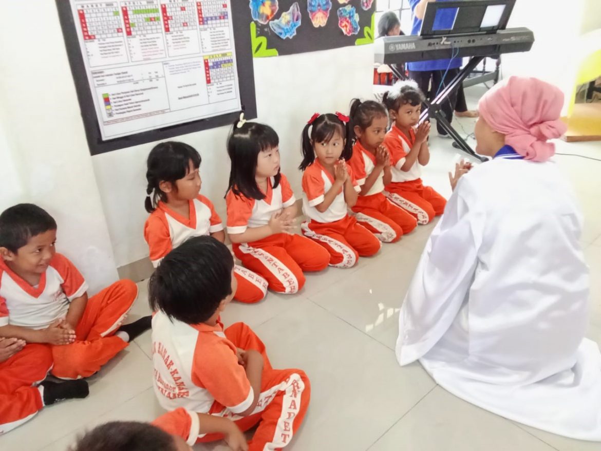 Setelah berdoa kegiatan di lanjutkan dengan mendengarkan kata sambutan dari kepala sekolah, mengenai tentang Santa bernadeth, disini juga ada interaksi dengan anak-anak, dengan mengajukan beberapa pertanyaan dan dijawab oleh anak.