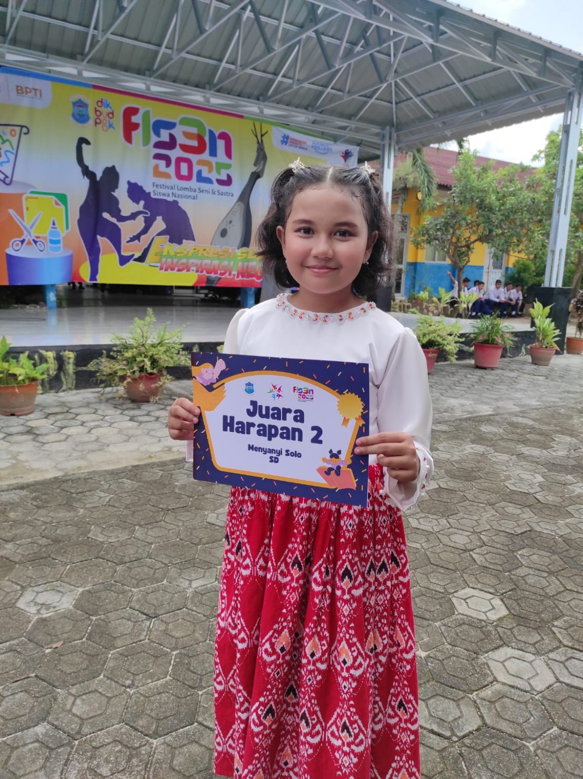 Pangkalpinang, YTKNews.id – Pada FLS3N tahun ini, SD Santo Paulus I mengirimkan beberapa siswa untuk mengikuti di berbagai lomba, antara lain : menggambar bercerita, pantomin, seni kriya, dan menyanyi solo. Setelah melalui proses penyisihan, Thalia Pelita Everdeen, siswa kelas 5 SD Santo Paulus I Pangkalpinang, berhasil meraih Juara Harapan 2 dalam Festival Lomba Seni dan Sastra Siswa Nasional (FLS3N) tingkat Kota Pangkalpinang cabang Menyanyi Solo. Dalam lomba ini, Thalia membawakan lagu berjudul “Perahuku Laju Anganku Serta.”