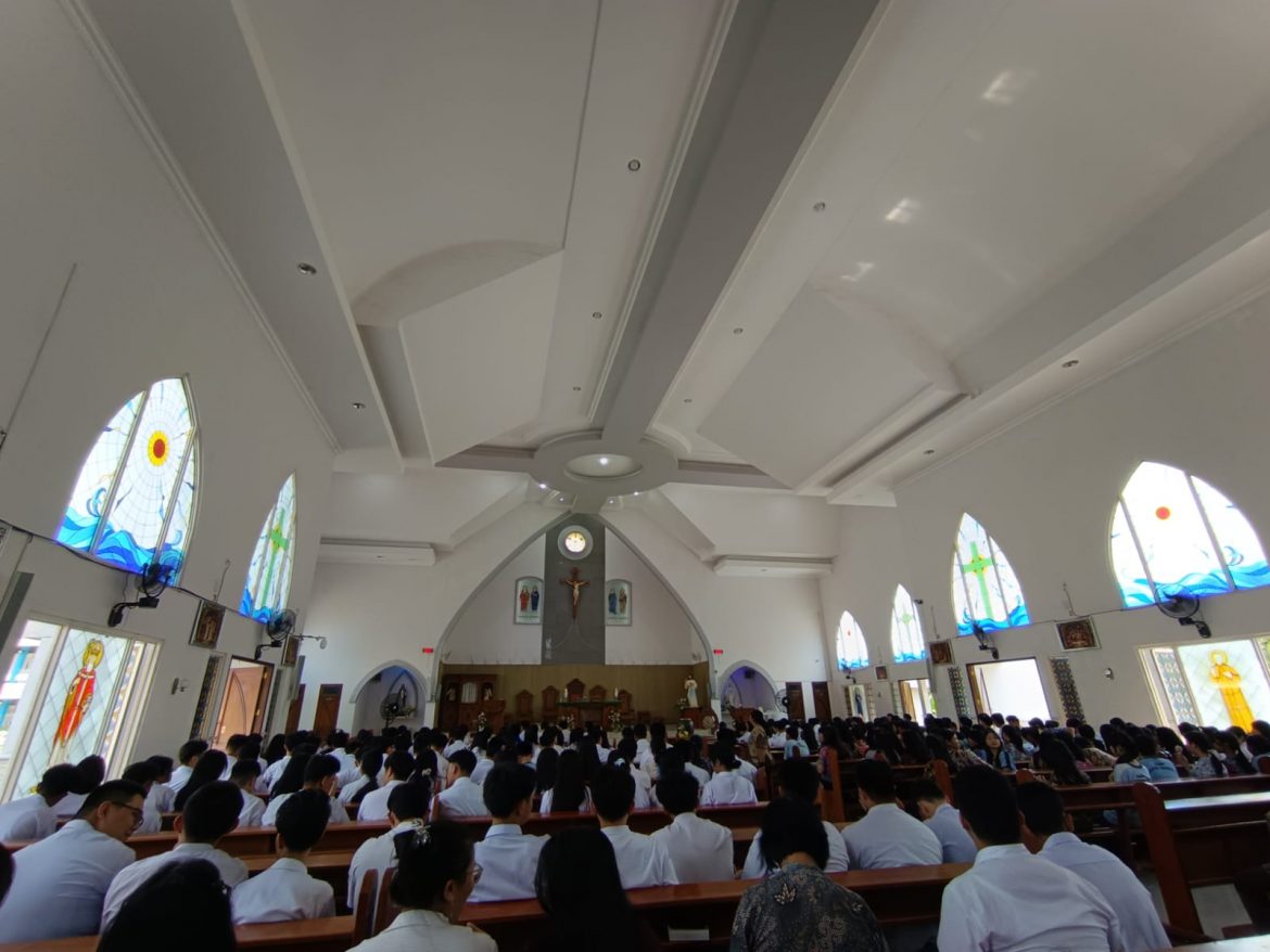 Suasana penuh syukur dan sukacita semakin terasa saat lagu-lagu rohani dilantunkan oleh paduan suara sekolah, membawa umat masuk dalam doa yang khusyuk. Di akhir perayaan, Romo Untung memberikan berkat khusus bagi siswa-siswi agar senantiasa diberi kesehatan, hikmat, dan semangat belajar yang teguh.