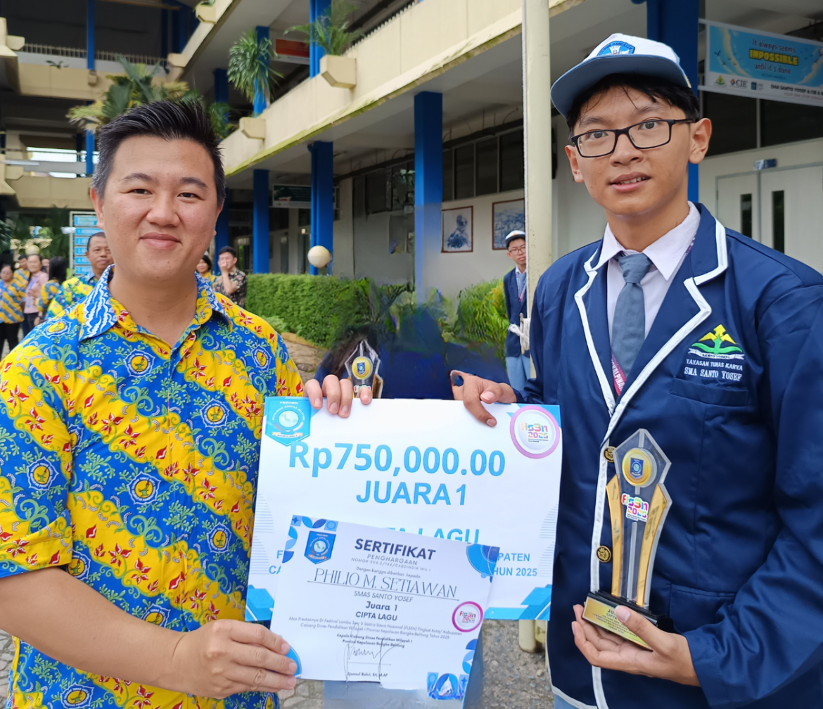 Pangkalpinang, YTKNews.id – Prestasi membanggakan kembali diraih oleh SMA Santo Yosef Pangkalpinang. Salah satu siswanya, Philio Manuel Setiawan, berhasil meraih Juara 2 dalam ajang Festival Lomba Seni dan Sastra Siswa Nasional (FLS3N) tingkat Provinsi Kepulauan Bangka Belitung tahun 2025 pada bidang Cipta Lagu.