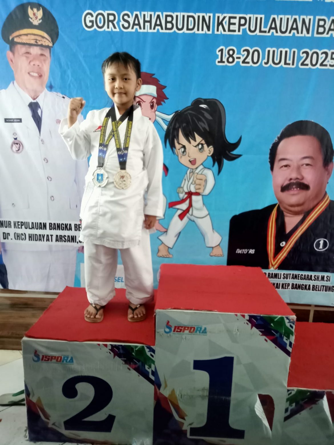 Toboali, YTKNews.id – Prestasi membanggakan kembali lahir dari dunia pendidikan. Aurel Natasya Lie, siswi kelas 1 SD Karya, berhasil meraih Juara 2 pada cabang komite dalam ajang Kejuaraan Karate Open Usia Pra Dini yang digelar di GOR Sahabudin, Pangkalpinang, pada 18–20 Juli 2025.