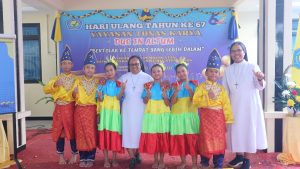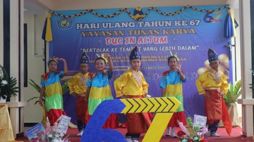 Pangkalpinang, YTKNews.id – Kebahagiaan tampak menyelimuti keluarga besar Yayasan Tunas Karya di Biara Susteran SSpS pada Selasa, 9 September 2025. Perayaan ulang tahun Yayasan Tunas Karya yang mengusung tema “Duc in Altum” berlangsung meriah dan penuh makna. Acara ini dihadiri langsung oleh Uskup Keuskupan Pangkalpinang, Mgr. Adrianus Sunarko, OFM. Salah satu penampilan yang paling menyita perhatian para undangan adalah tari daerah Bangka Belitung, yaitu Tari Campak yang dibawakan oleh anak-anak SD Santa Theresia 1 Pangkalpinang.