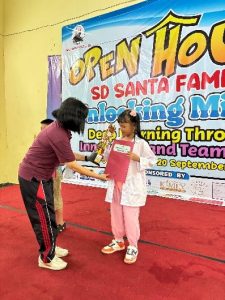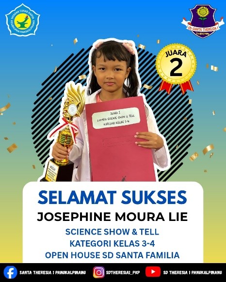 Pangkalpinang, YTKNews.id – Sabtu, 20 September 2025 peserta didik SD Santa Theresia 1 Pangkalpinang kembali mengukir prestasi. Prestasi tersebut diraih dalam rangka open house yang diadakan oleh sekolah yang lokasinya tidak jauh dari gereja Santa Bernadeth yaitu SD Santa Familia, dengan cabang lomba “Science Show and Tell Kategori Kelas 3-4”. Dalam kegiatan tersebut Josephine Moura Lie berhasil meraih juara yang kedua. Rasa bangga dan keceriaan terukir jelas di wajahnya saat ia menerima piala kemenangan.