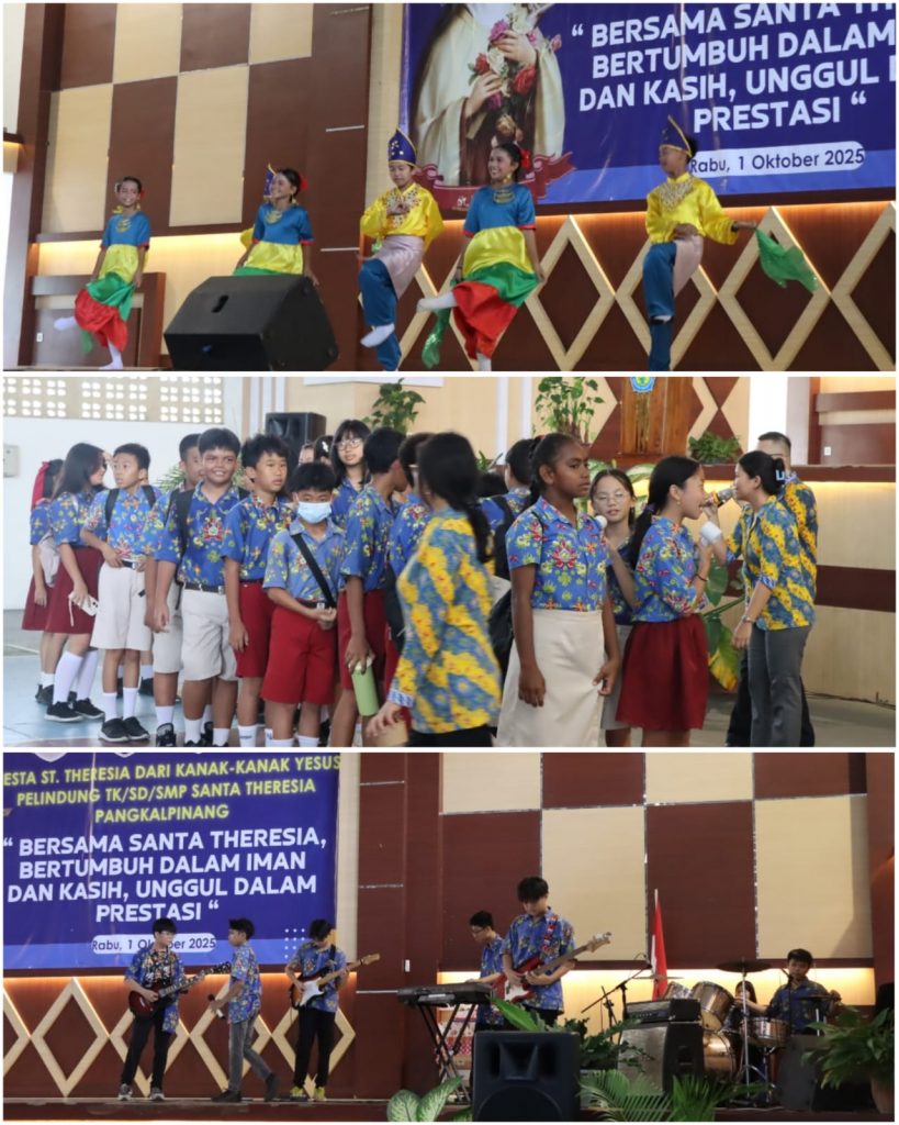 Pangkalpinang, YTKNews.id — Puncak perayaan Pesta Santa Theresia dari Kanak-kanak Yesus, pelindung sekolah-sekolah Santa Theresia, berlangsung meriah pada Rabu, 1 Oktober 2025. Perayaan bersama ini melibatkan empat sekolah: TK Santa Theresia 2, SD Santa Theresia 1, SD Santa Theresia 2, dan SMP Santa Theresia. Ini adalah konsep yang berbeda dengan perayaan pada tahun-tahun sebelumnya di mana setiap sekolah merayakannya di sekolah masing-masing.