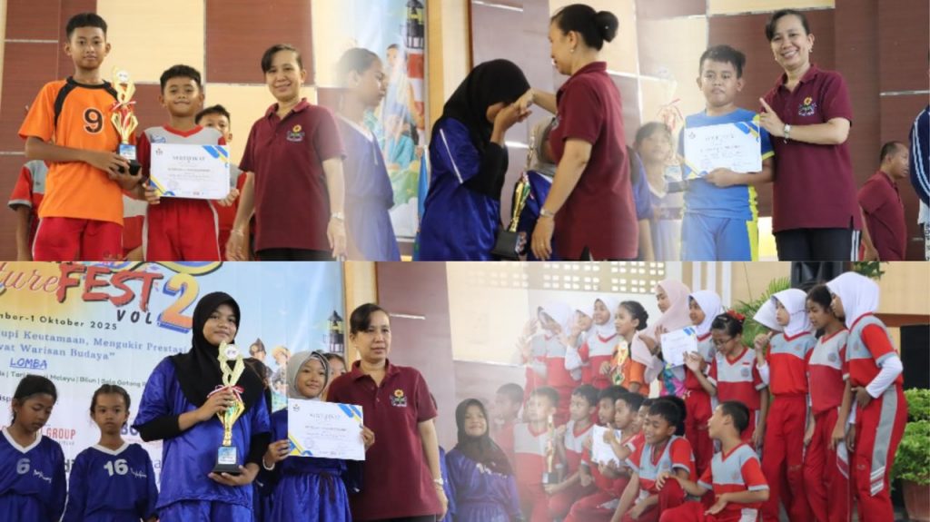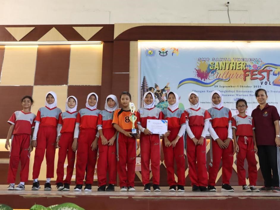 Pangkalpinang, YTKNews.id — Dalam rangka merayakan hari ulang tahun sekolah, SMP Santa Theresia mengadakan kegiatan yang dikolaborasikan dengan kegiatan Santher Culture Fest Volume 2, yang merupakan acara tahunan sekolah dimana ini merupakan tahun kedua diadakan. Acara ini menggelar beberapa perlombaan di bidang seni bahkan olahraga, salah satunya yaitu permainan tradisional dengan kategori Bola Gotong Royong. Permainan yang berlangsung meriah di GOR sekolah ini dilaksanakan pada 30 September lalu. Perlombaan ini diikuti oleh 13 tim dengan jumlah peserta sebanyak 169 siswa-siswi kelas 5 hingga 6 SD yang terdiri dari berbagai sekolah di sekitar kota Pangkalpinang.