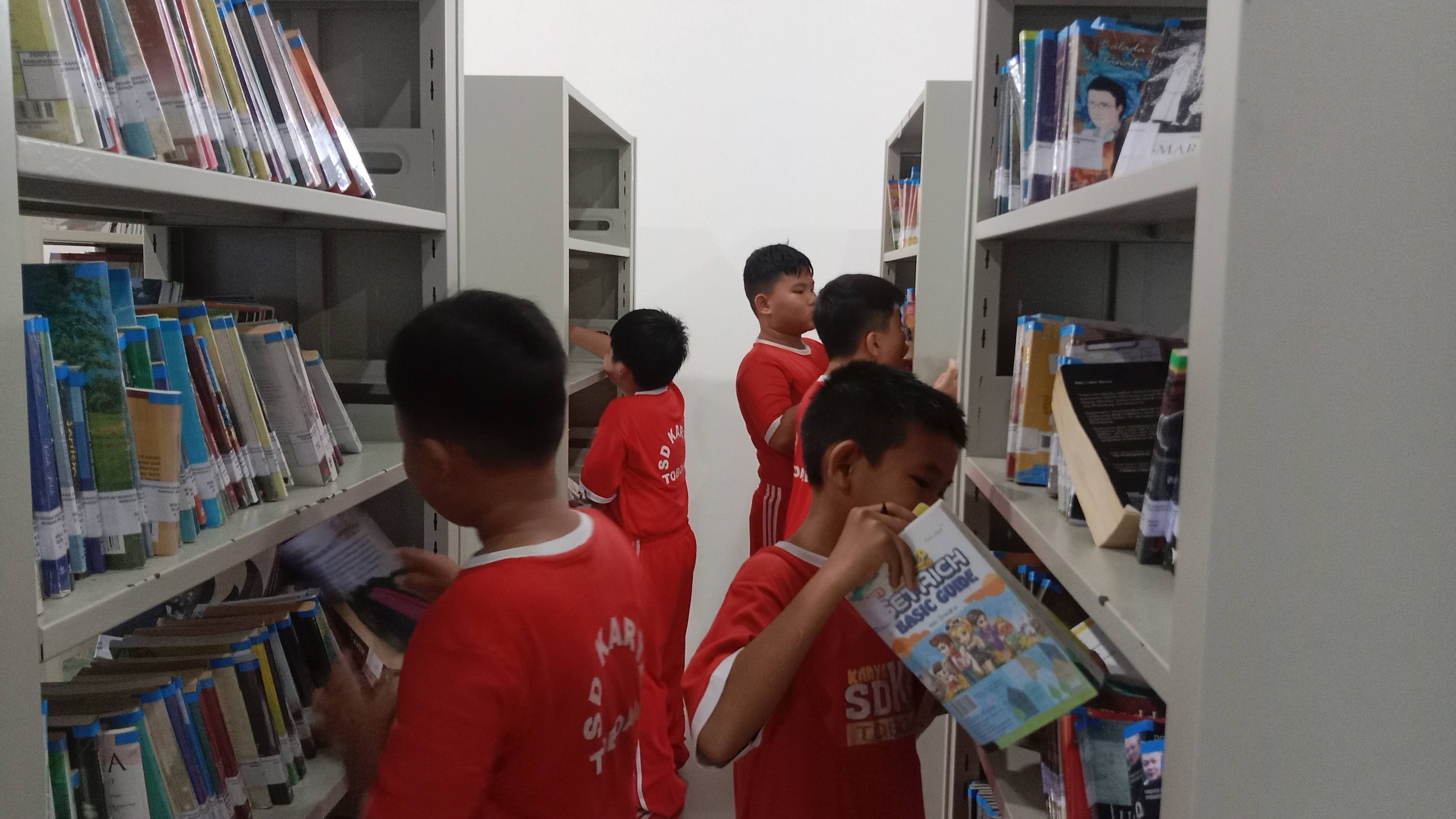 Didampingi oleh wali kelas, Ibu Fonny, S.Pd, serta pustakawan sekolah, Bapak Yusuf Ngatiman, para siswa terlihat antusias menjelajahi setiap sudut perpustakaan. Mereka asyik memilih buku-buku bacaan yang menarik dan menikmati suasana membaca di ruang yang nyaman dan kondusif.