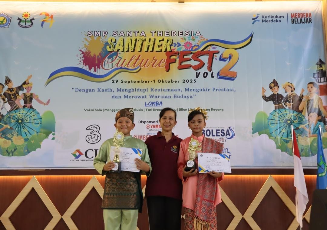 Pangkalpinang, YTKNews.id — GOR SMP Santa Theresia Pangkalpinang bergemuruh, bukan oleh teriakan pertandingan, melainkan oleh alunan suara emas para peserta lomba vokal solo dalam rangkaian Santher Culture Fest Vol. 2. Kegiatan yang diadakan pada 30 September lalu ini diikuti oleh beberapa sekolah dasar di wilayah pangkalpinang dan sekitarnya. Panggung seakan berubah menjadi taman nada; setiap peserta menebarkan pesona lewat suara mereka yang merdu, menghipnotis penonton hingga tak ingin berkedip.
