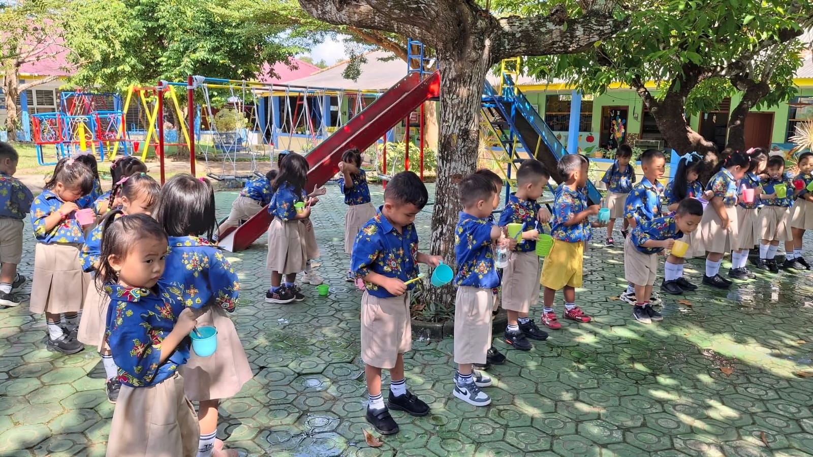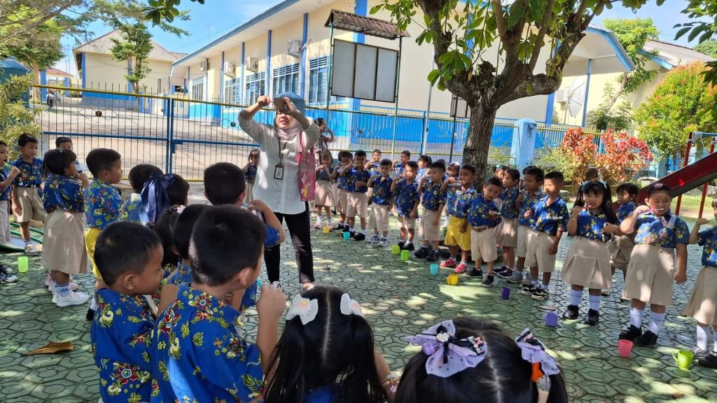 Setelah sesi penjelasan, kegiatan dilanjutkan dengan praktik sikat gigi bersama di halaman sekolah. Setiap anak telah menyiapkan sikat dan pasta gigi mereka masing-masing. Petugas kesehatan dan para guru mendampingi anak-anak saat mempraktikkan cara menyikat gigi sesuai arahan yang telah diberikan. Dari wajah mereka terlihat rasa bangga dan senang karena dapat belajar sambil bermain. Melalui kegiatan ini, diharapkan anak-anak semakin sadar akan pentingnya menjaga kesehatan gigi dan mulut sejak dini. Selain itu, kerja sama antara sekolah dan Puskesmas Selindung menjadi bentuk nyata sinergi dalam mewujudkan generasi yang sehat, bersih, dan ceria.