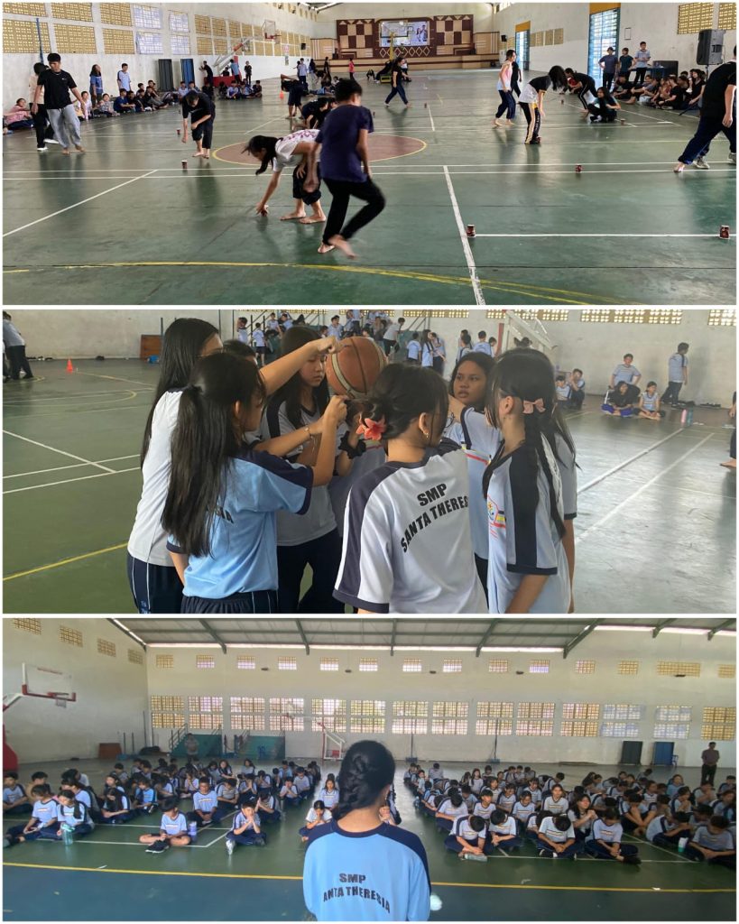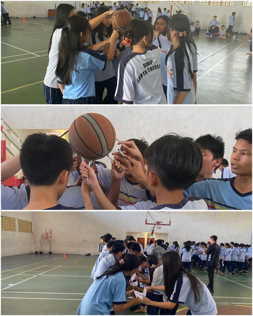 Semarak kegiatan kokurikuler kelas VIII ini memuncak pada hari kamis, dengan diadakannya perlombaan Bola Gotong Royong dan permainan dinamika kelompok antar kelas. Sorak sorai dan tawa memenuhi GOR SMP Santa Theresia, menunjukkan betapa senangnya para murid terlibat dalam kompetisi yang sehat ini. Setelah perlombaan usai, kegiatan dilanjutkan dengan menyusun rancangan laporan kegiatan dari hari pertama hingga hari keempat.